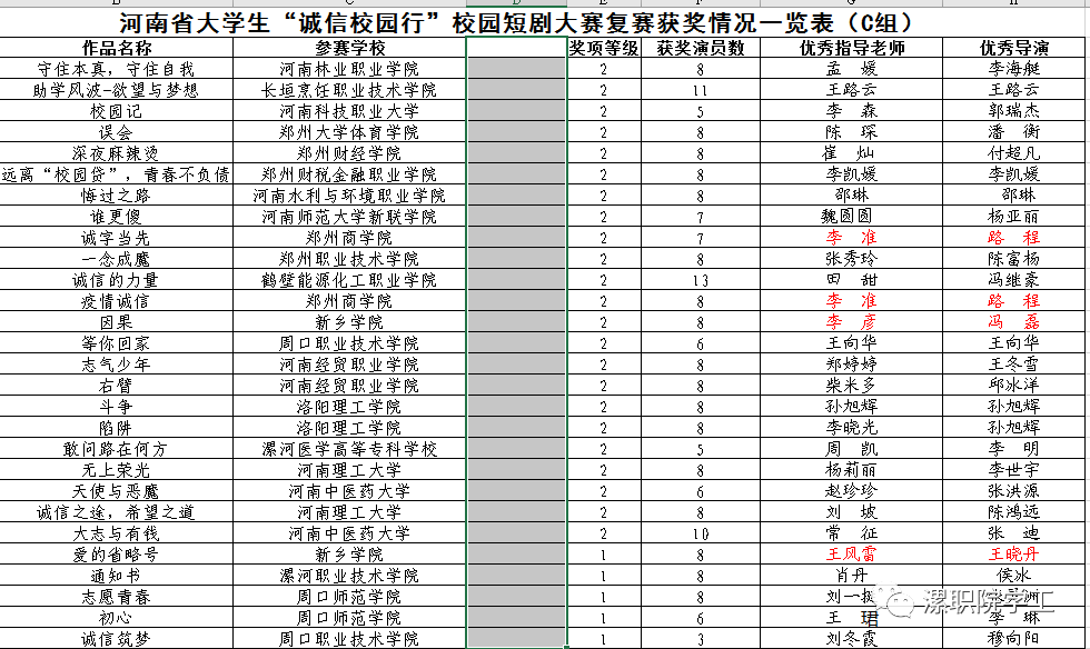 今年11月由我校学生处选送、旅游与航空学院侯冰老师导演、肖丹老师指导、高慧怡等8名学生参演的“诚信校园行”短剧《通知书》,凭借精彩的画面、突出的主题、精细的编排、精致的台词、精湛的表演,在周口师范学院举办的河南省大学生“诚信校园行”短剧大赛复赛中,获得大赛一等奖的佳绩。我校“诚信校园行”活动自开展以来,已经经过了10余年,取得了丰富的硕果、傲人的成绩。