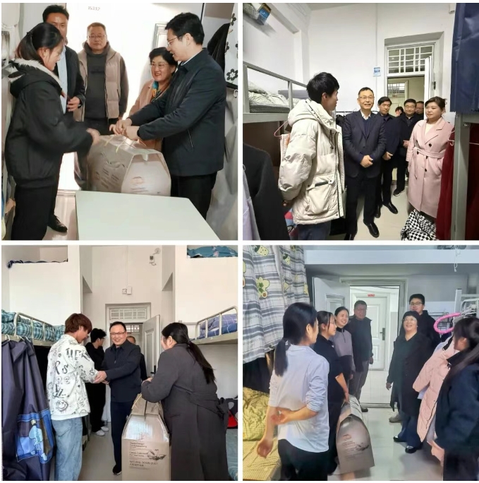 为深入落实立德树人根本任务,切实将国家精准资助政策落到实处,近日,我校组织开展“冬季送温暖”活动。学校党委书记邢淑婕、校长薛存心及领导班子成员分别深入学生宿舍,走访慰问同学们的学习与生活情况,并送上满载关怀的过冬棉被,以实际行动传递学校温暖。