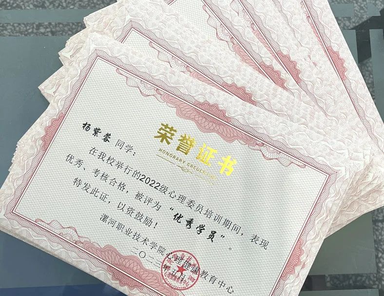 经过多方面考评,心理健康教育中心为培训合格的心理委员发放“优秀学员”证书,为本次培训划上圆满句号。