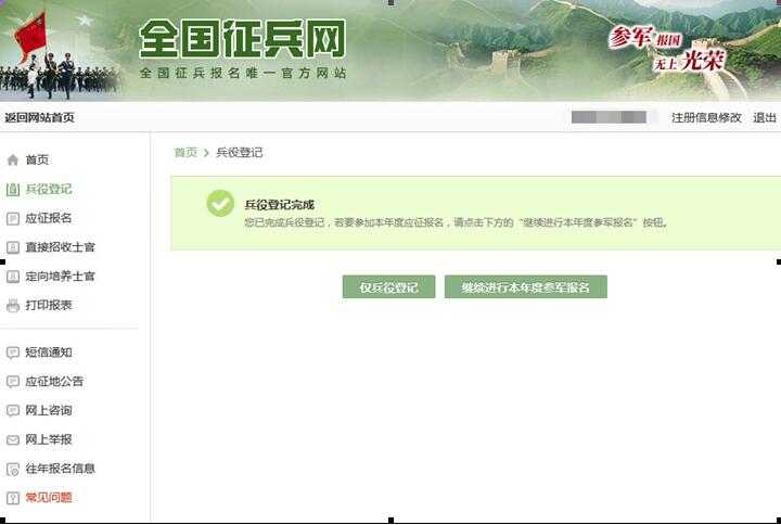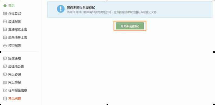 登录系统以后,点击右侧的“开始兵役登记”进行报名工作啦!