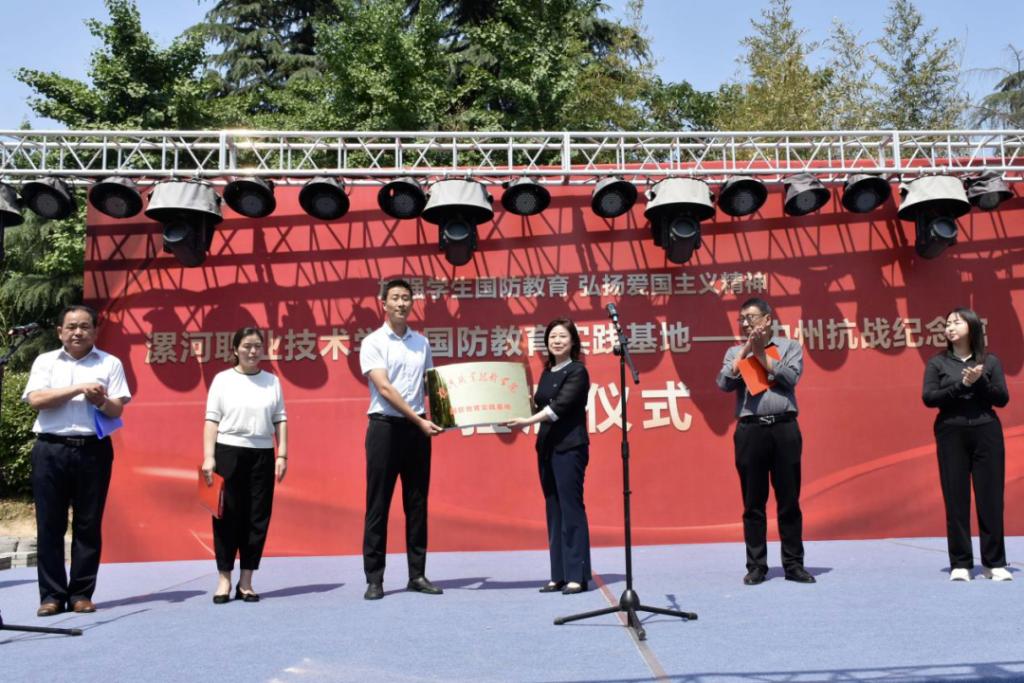 5月10日,OK138太阳集团国防教育实践基地在漯河市中州抗战纪念馆正式挂牌。学院党委委员、副院长程传蕊出席仪式并讲话,相关系部负责同志及辅导员代表、学生代表共100余人参加仪式。