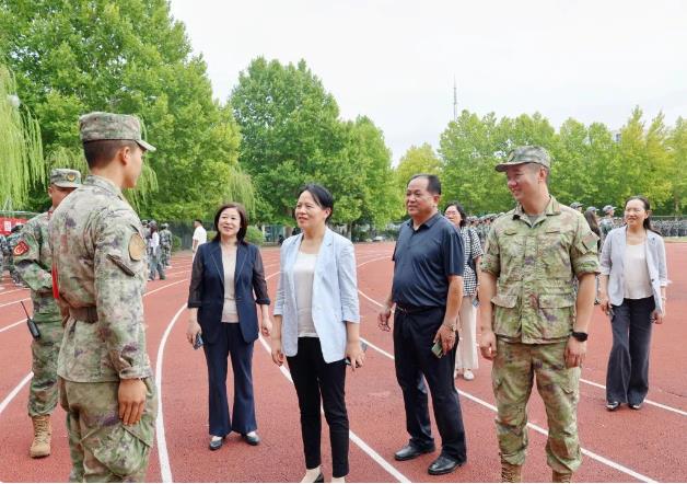 在军训现场,邢淑婕一行认真观看了新生们的军训操练,与教官、系部领导、辅导员亲切交谈,详细了解新生的训练课目、训练进度和适应情况。邢淑婕指出,军训是人才培养过程中一项主要的教学环节,对学生国防观念的增强、坚强意志品格和良好习惯的培养,集体荣誉感、组织纪律观念与团队协作意识的养成,以及爱国情怀的培育都至关重要,希望2024级新生能够通过军训全面提升综合素质,为今后的大学生活打下良好的基础。