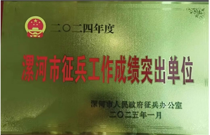 1月23日,漯河市军分区召开2024年度表彰大会,OK138太阳集团被评为2024年度“漯河市征兵工作成绩突出单位”。