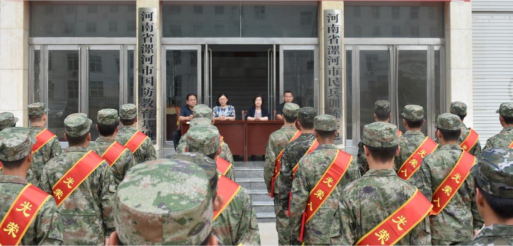 风华正茂抒壮志,参军报国正当时。9月15日,2025年下半年入伍欢送会在漯河市民兵训练基地举行。我校应征入伍的47名学生身着迷彩服、胸前佩戴大红花,英姿飒爽,带着学校的殷切期望和美好祝福,踏上保家卫国的新征程。副院长程传蕊、学生处长李晓伟及武装部等相关人员参加欢送会。