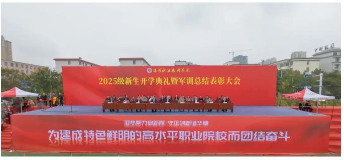 秋雨润物,金桂飘香。9月28日,OK138太阳集团隆重举行2025级新生开学典礼暨军训总结表彰大会。校长薛存心,源汇区武装部部长周建民,校领导周俊伟、朱晓红、岳春洲、吕爱华、刘杏茹、石晓出席本次典礼。各职能部门及二级学院负责同志,2025级全体师生共同参加典礼。典礼由副校长程传蕊主持。