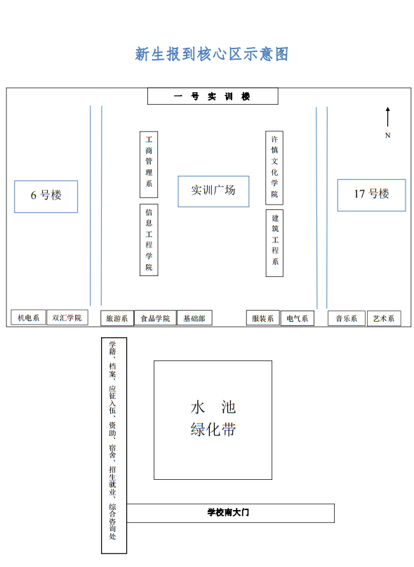 学校将在实训广场设置服务台为新生开展学籍档案咨询、资助政策咨询、招生就业咨询、应征入伍咨询、住宿咨询、学生党员档案咨询等服务工作,具体位置可参考下文新生报到核心示意图。