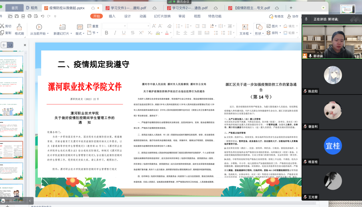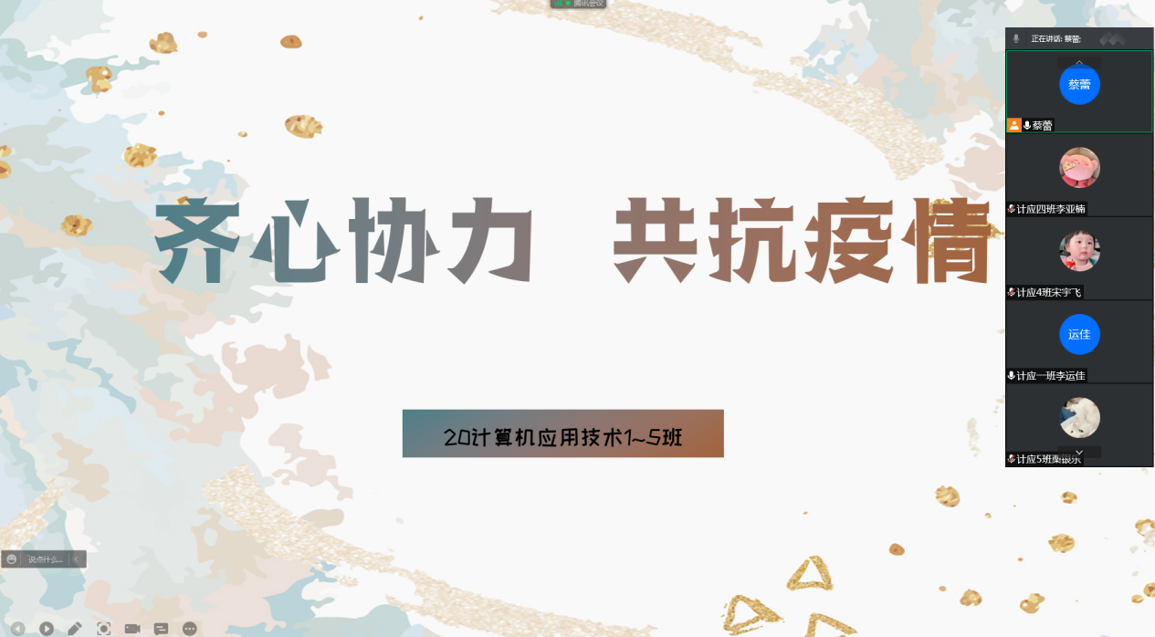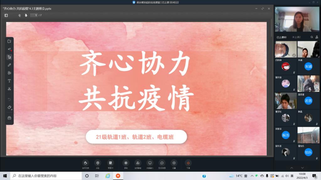 为认真落实上级决策部署要求,进一步引导全校同学科学防疫,增强同学们战胜疫情的信心,在学生处组织下由各院系围绕“齐心协力 共抗疫情”开展主题线上云班会活动。