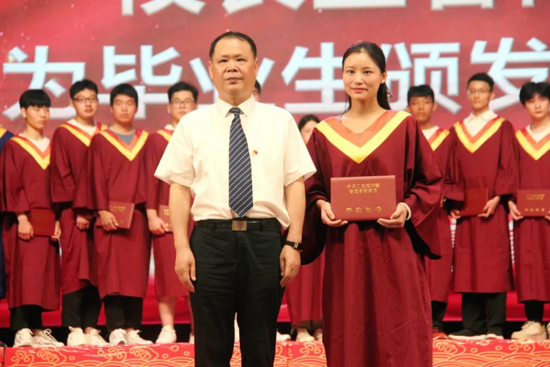 王春阳为学校2021届优秀毕业生代表颁发毕业证书
