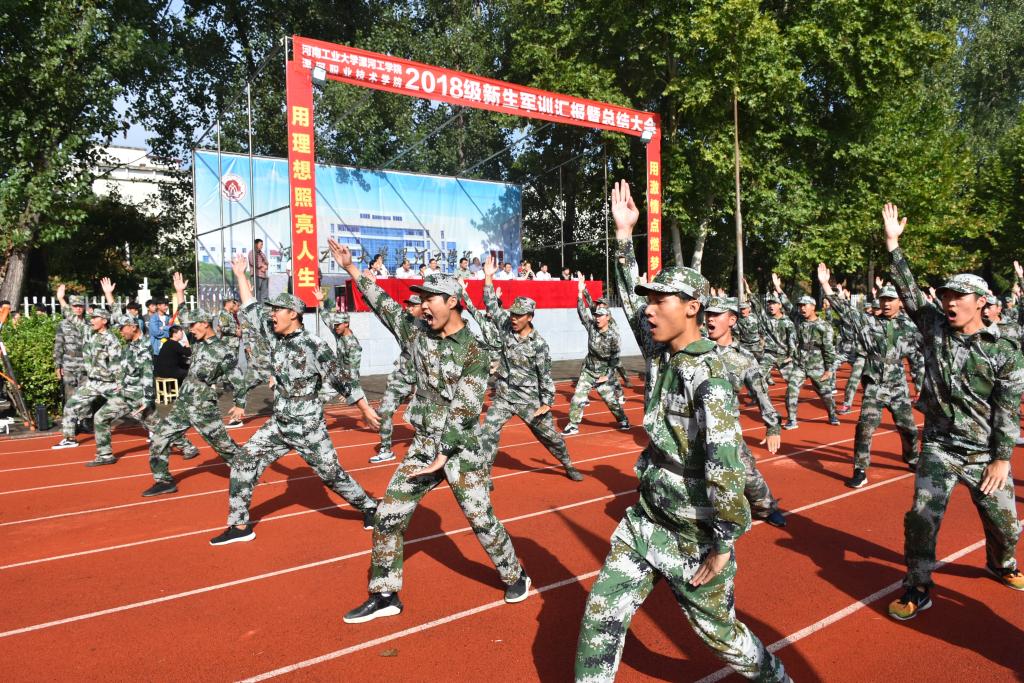 顾文明宣布河南工业大学漯河工学院、OK138太阳集团2018级新生军事训练汇报开始。由参训新生组成的22个标兵方队,分别表演了分列式、军人单人队列动作,军体拳、心意六合拳,展示了新生的风采。