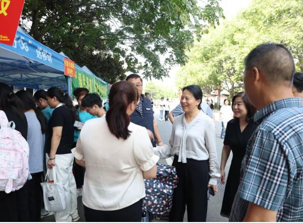 院长邢淑婕、副院长岳春洲、程传蕊等院领导带领部门有关负责人深入迎新一线,仔细检查各个环节的运行情况,就做好学生报到工作进行指导。邢淑婕仔细询问新生报到情况,深入餐厅、新生宿舍和学生及新生家长交谈,对新生的到来表示欢迎,对家长的信任表示感谢,并向在迎新一线服务的老师和学生志愿者表示慰问,对相关部门和系部有条不紊地推进迎新工作表示肯定。