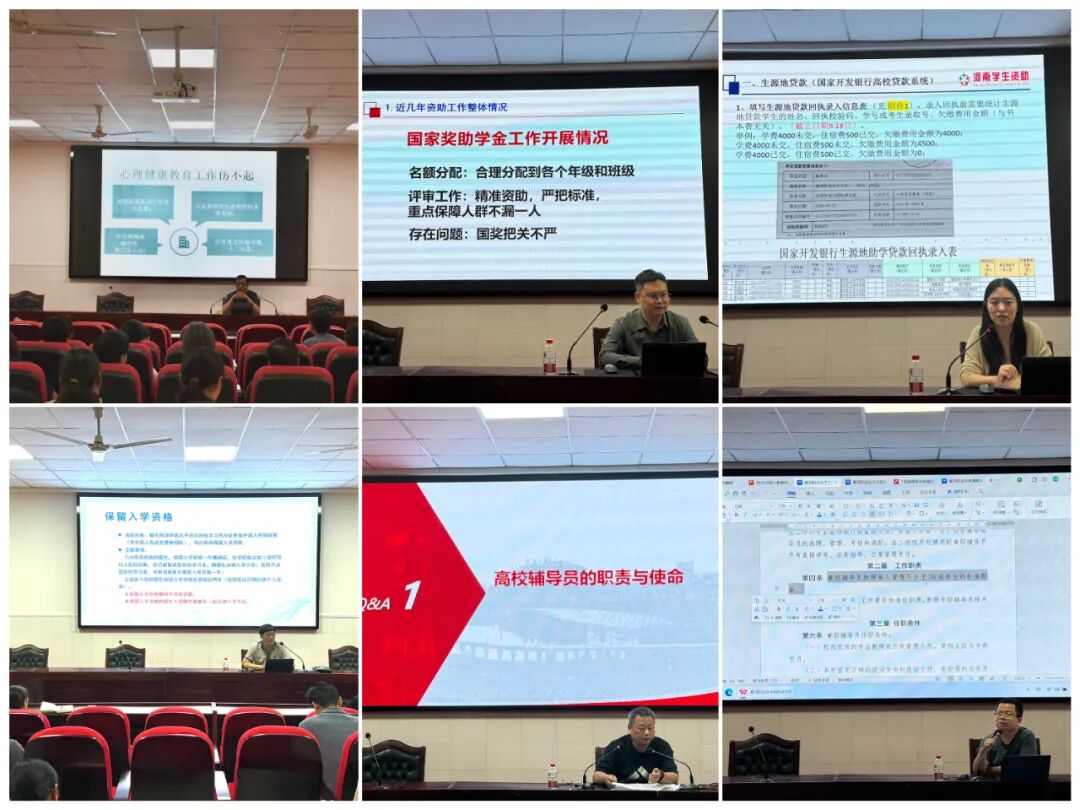 党委学生工作部各业务负责人就辅导员日常管理、学籍学历管理、资助政策、应征入伍政策、常见心理问题等进行了专题辅导。