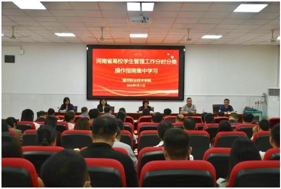 为深入学习贯彻习近平新时代中国特色社会主义思想和党的二十大精神,扎实推动我校学生工作高质量发展,今年9月以来,党委学生工作部统筹部署、分层推进,以“学校集中引领、学院分散组织”相结合的方式,组织开展了《河南省高校学生管理工作分时、分类操作指南》(以下简称《指南》)系列专题学习教育活动。本次活动紧扣新时代学生工作的内涵要求,着力促进学生管理服务向科学化、精细化、系统化转型升级。