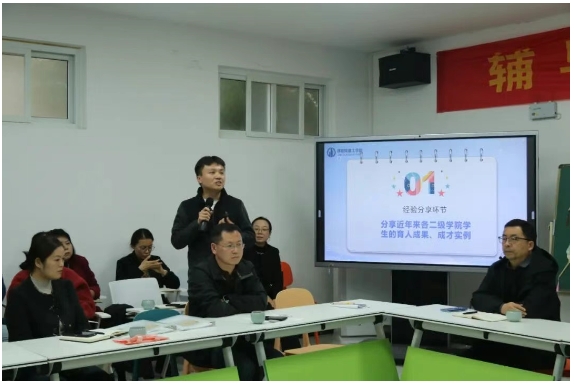 王志皓以自身学管工作经历为切入点,通过典型育人成果、托举帮扶案例、思维导图归纳,有针对性地分享学生成才、干部培养的措施,对在参会者后续的教育工作开展鼓足了育人信心与工作激情。