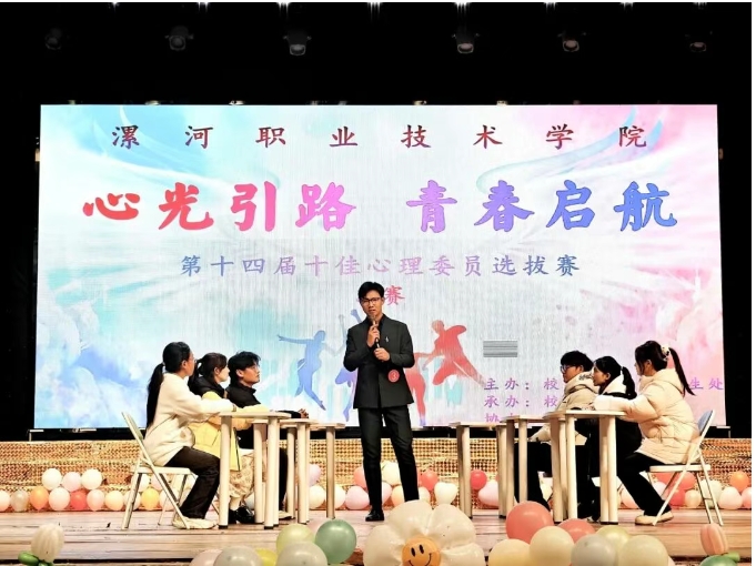 为深化学校心理健康教育工作,充分发挥班级心理委员在普及心理健康知识、疏导学生心理困惑中的桥梁作用,近日,我校第十四届“十佳心理委员”选拔赛决赛在大礼堂顺利举行。校党委委员、副校长程传蕊出席活动,党委学生工作部及各二级学院主要负责同志、心理健康指导教师及1020余名学生代表共同参加。