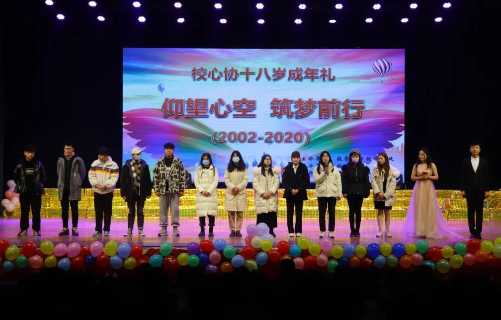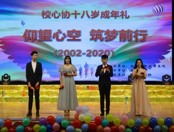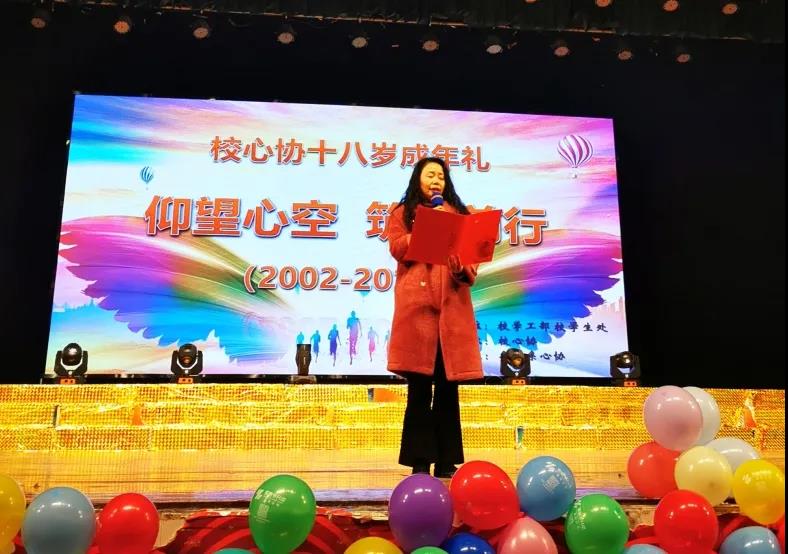 为庆祝校心理健康教育协会十八岁成年礼,展现学校及各院系心理协会成员勤奋、团结、有责任心的工作作风,12月22日晚18时,“仰望心空,筑梦前行”校心协十八周年生日晚会在校大礼堂隆重上演。活动由校学生处、心理健康教育中心主办、校心理健康教育协会承办。我校许慎文化学院党总支书记寇槐花、学生处副处长王新娜、心理健康教育中心主任付进华及各院系心理指导老师与近千名师生共同观看了晚会。