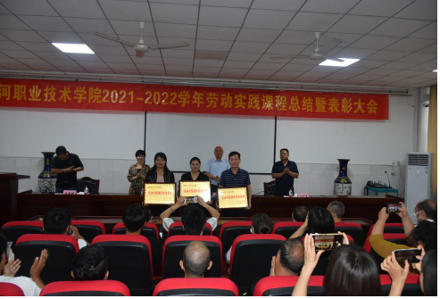 习近平总书记强调:“要在学生中弘扬劳动精神,教育引导学生崇尚劳动、尊重劳动,懂得劳动最光荣、劳动最崇高、劳动最伟大、劳动最美丽的道理。”为充分发挥劳动教育育人功能,引导同学们牢固树立正确的劳动价值观,提高劳动素养,让广大学生热爱劳动、尊重劳动,让他们在劳动创造中实现远大理想和个人目标,树立依靠辛勤劳动获取财富、实现人生价值的正确思想观念,我院于6月16日下午召开了2021-2022学年度劳动教育实践活动表彰会,教务处、总务处、学生处负责人,各系部党总支副书记、系部获表彰的指导教师及部分学生代表参加会议。